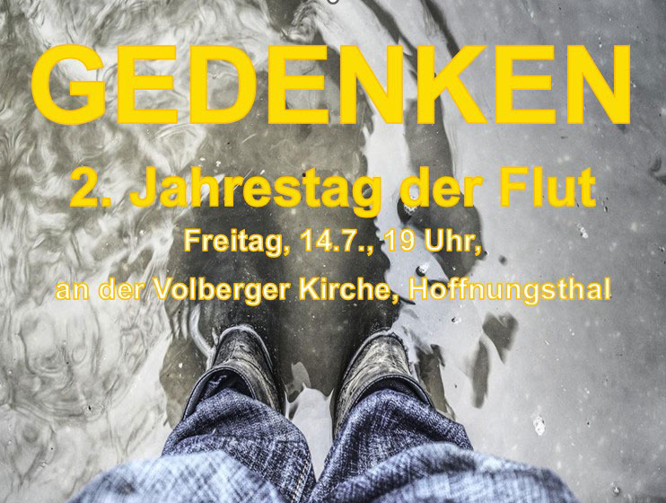 Am Freitag jährt sich die Flutkatastrophe, die unsere Stadt so schlimm getroffen hat, zum zweiten Mal. Ein Ereignis, das vielen von uns ins Gedächtnis gebrannt ist - und das viele noch nicht verwunden haben. In einer gemeinsamen Initiative von Rösrather Bürgerinnen & Bürgern, den Kirchen, der Stadt Rösrath und der Engagierten Stadt laden wir Euch am 14. Juli, 19 Uhr, herzlich zu einem Gedenken und Gedankenaustausch auf den Kirchhof der Volberger Kirche ein.